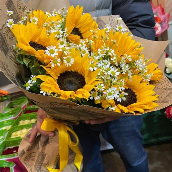 Букет из ромашек и подсолнухов